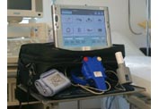 Das Mobile Care Unit ist eine mobile Diagnosestation, an die unterschiedliche Endgeräte angebunden sind, die über einen Tablett-PC bedient werden.
